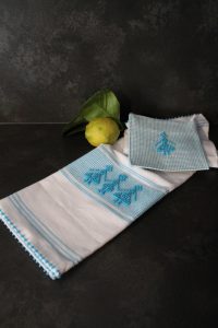 Asciugapiatti lavorato a mano con tecnica pibiones in puro cotone 100%.